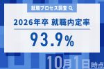 就職内定率/就職内定率の推移(2013年卒~2026年卒)/内定取得先企業の業種・従業員規模/進路確定率/就職内定辞退率/就職確定先企業の業種・従業員規模/就職確定先企業の内定式開催予定/就職確定先企業の内定式実施予定形態/内定取得企業数・内定保有企業数・内定辞退企業数/就職活動実施率(全体・内定未取得者・内定取得者)/就職活動実施率