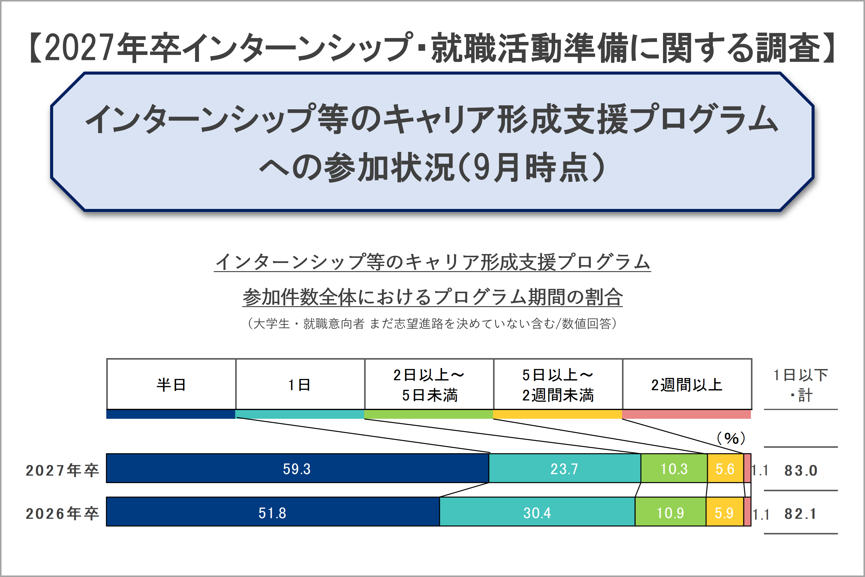 【2027年卒 インターンシップ・就職活動準備に関する調査】インターンシップ等のキャリア形成支援プログラムへの参加状況(9月時点)